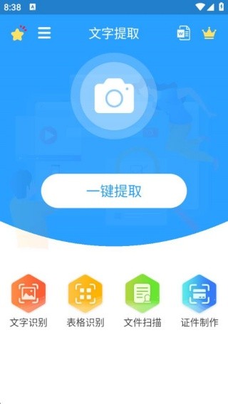文字提取app是一款体积小巧编辑的扫描工具,可以快速的扫描出图片上的文字提取生成文档导出,支持文字识别、表格识别、文件扫描、证件制作功能,适用范围很广。文字提取支持多种语言识别,智能OCR精准识别出图片上的文字支持一键复制导出成word格式,全新版本提升了拍照识别的质量有需要的用户赶快下载吧。