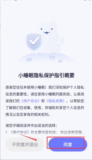 1、阅读并确认服务协议,点击进入睡眠管理功能主操作界面。
