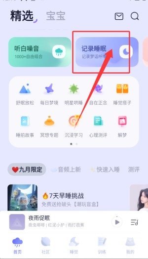 1、首页提供舒眠放松、梦境记录、睡前故事、专注学习及梦境解析等多样化功能模块。