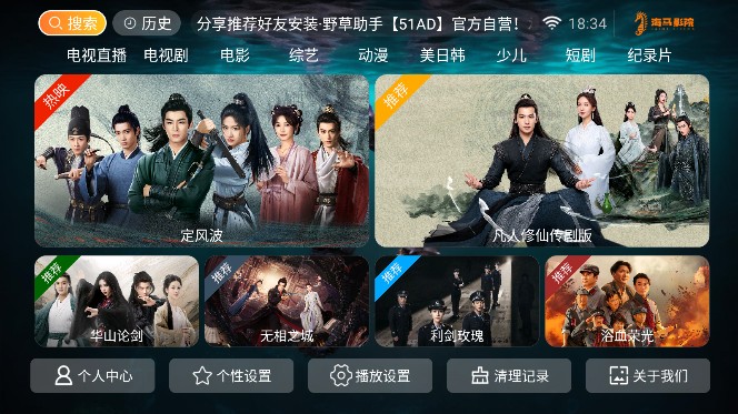 海马影院TV版是一款专为用户打造的影视资源观看软件,用户能够在软件之中随心观看各种的热门电影、电视剧等内容,同时软件还支持各种不同的播放线路自由调整,带来更加舒适的使用体验,支持不同设备的适配进行使用,观看优秀的影视资源,快来下载软件体验便捷的观影!