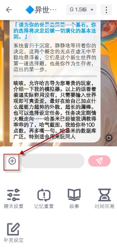 7、点击左下角的加号还可以进行聊天设置、记忆重置、补充设定等。