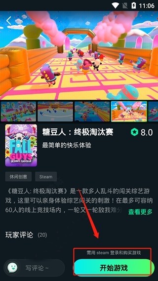 3、同时单击下即可看到详细的游戏画面图、评分、介绍、玩家评论等内容