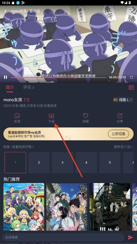 2、所有的动漫资源都可以离线下载,在没有网络的时候随意观看。