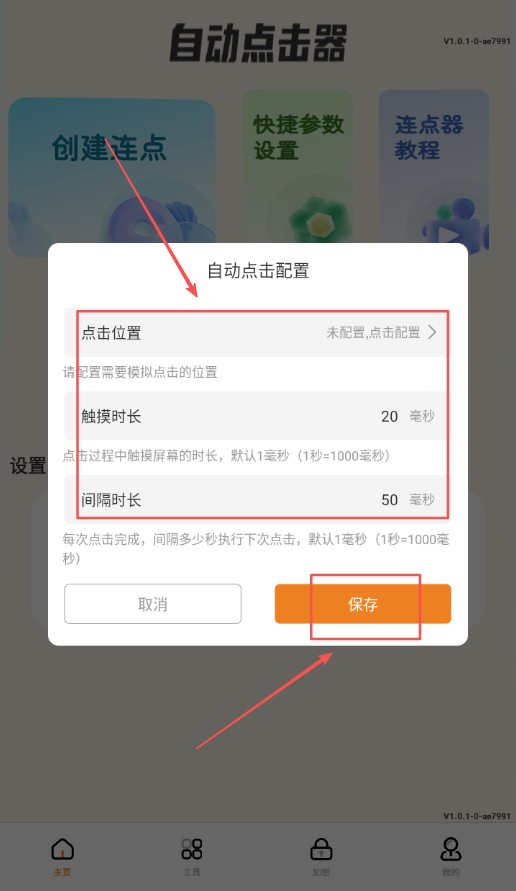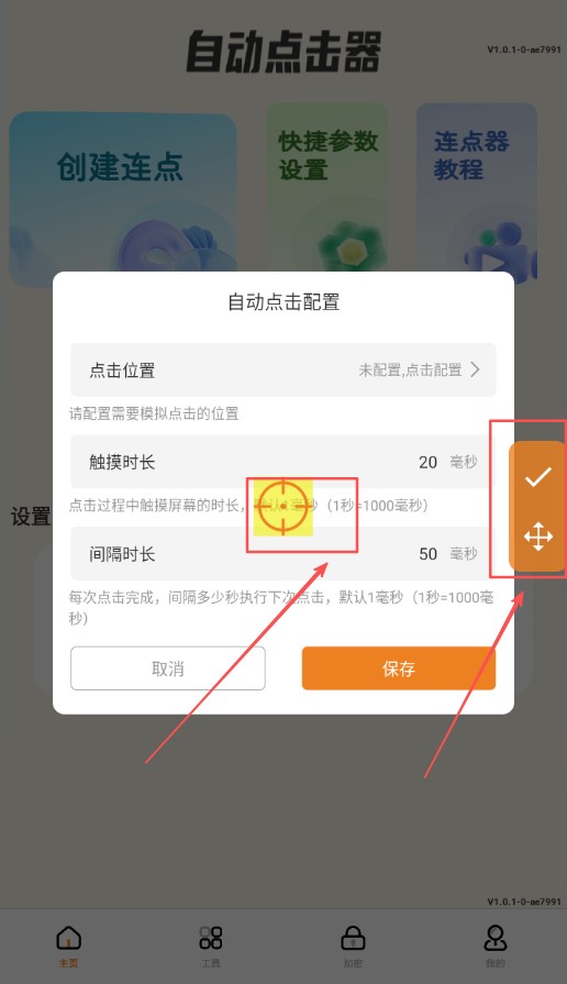 2、可以自定义设置,可以控制点击周期、触摸时长、执行次数。