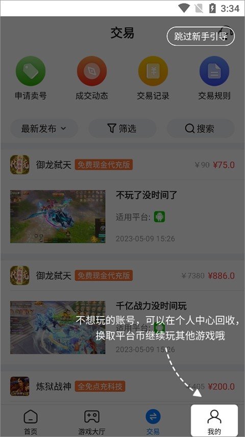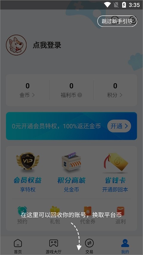 2、不想玩的账号可以在个人中心进行回收来换取平台金币就可以玩游戏