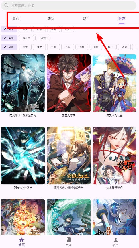 4、点击上方的分类可以精准检索想看的漫画类型;