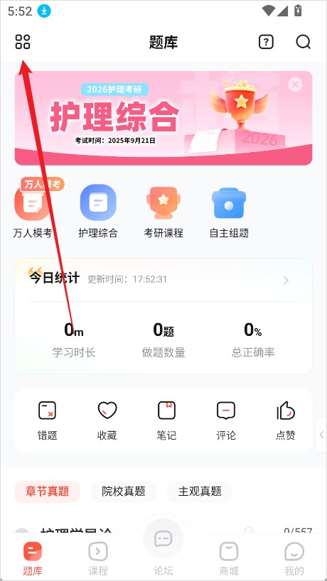 1、进入护考帮安卓版后,在首页位置点击左上角的图标