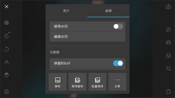通过导出照片功能我们可以对导出的照片进行设置,包括图片、水印两个大项。