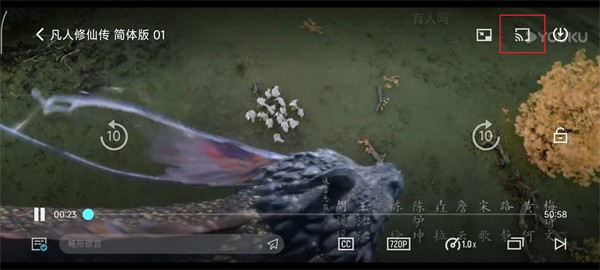 4、如果想投屏的话,点击屏幕上方带【信号图标】的即可开始投屏【确保手机与投屏设备链接同一WiFi】