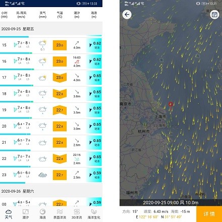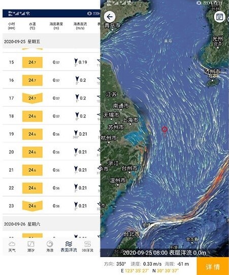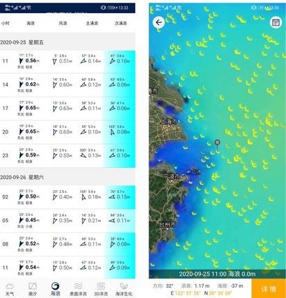 支持查看浪高、浪周期、浪方向以及它的3个分浪数据。