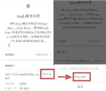 PS:付费方式是下载时自己选择的,有支付宝、微信和银行卡,我当时选的微信,所以图中事例为微信Apple服务扣费的取消