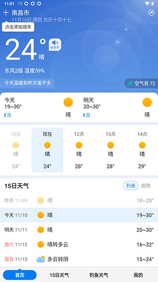 1、提供近15日天气变化,方便用户计划最近的出行。