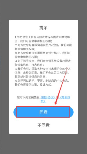 1、点击同意协议进入软件。