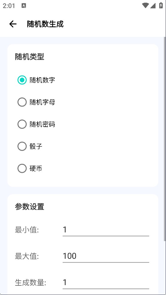 支持随机数字、字母、密码生成,模拟骰子/硬币投掷,可自定义参数。