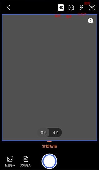 3、以“文档扫描”为例,进入后右上角可以调整画质像素、闪光灯以及裁剪比例等。