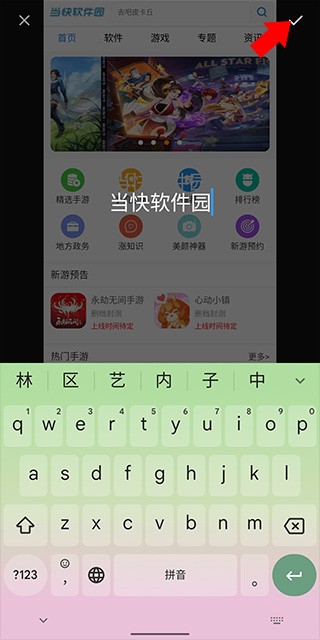 3、接着在弹出的输入框中输入我们想要添加的文字内容,然后点击右上角的“勾号”