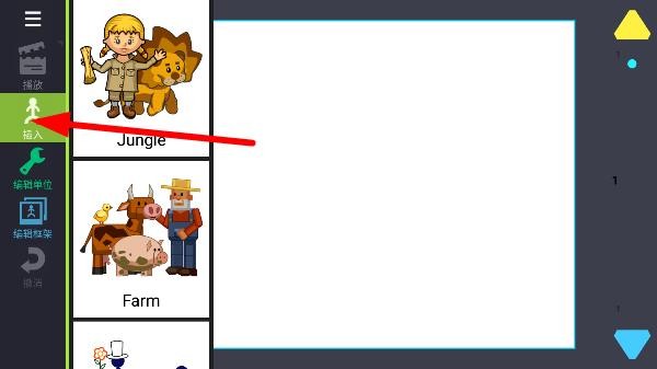 2、进入动画编辑界面,点击插入