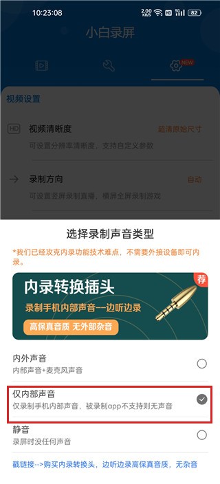 3、选中仅内部声音