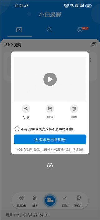 5、录制完成点击无水印导出相册即可