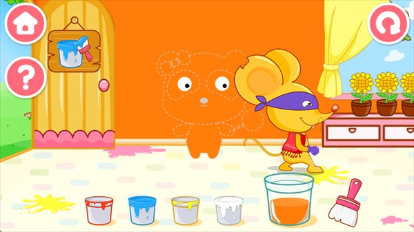 1、打开宝宝调色屋旧版后,玩家可以选择两种玩法模式,目标都是帮助小熊躲避老鼠的追捕。在“魔法油漆房”中,调配正确的颜色涂在小熊身上,让它隐身伪装;而在“魔法药水房”里,混合出不同效果的药水,可让小熊变小或飘起来成功脱险。