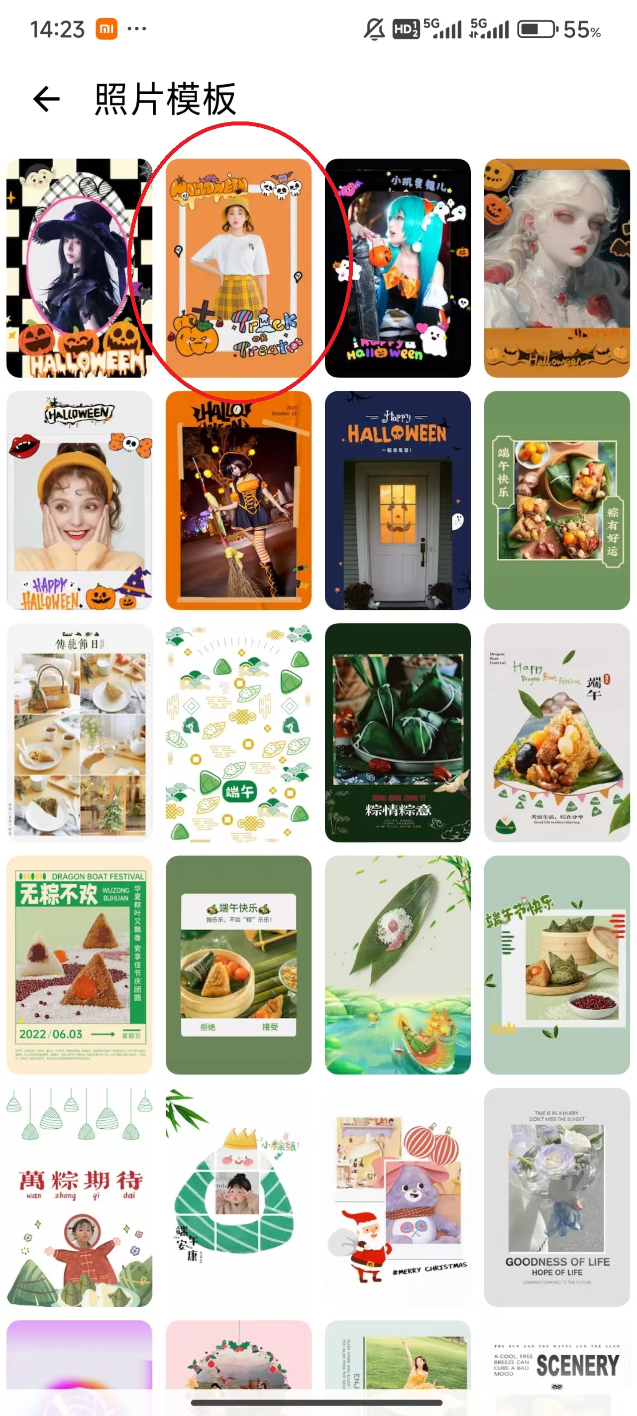 2、选择一个合适的照片模板,点击即可。