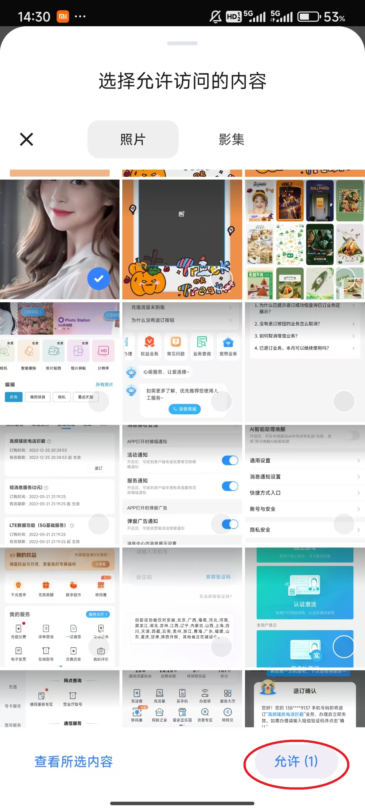 4、选择需要拼贴的照片,随后点击屏幕右下角的“允许”即可。
