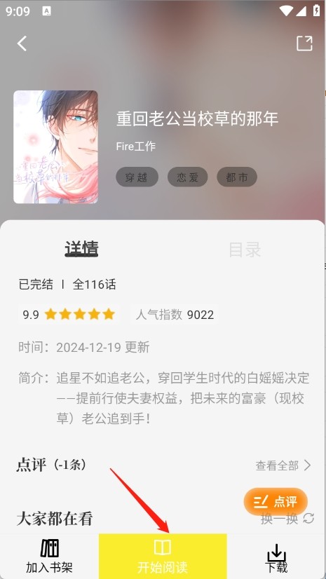 4、点开想看的漫画资源进入详情页,点击“开始阅读”。