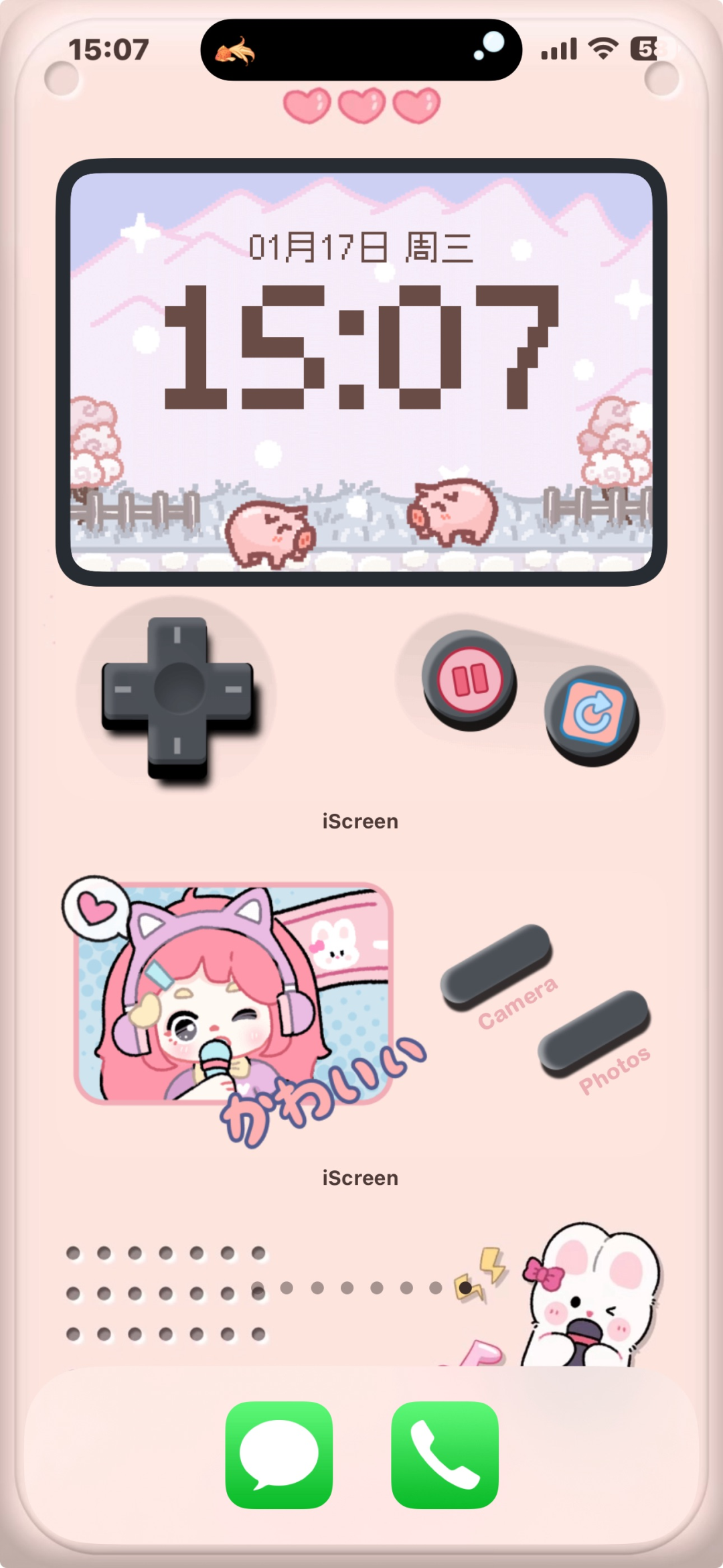 6、ok,一点小tips:左上角的游戏机按钮可以切换屏幕动画样式噢,右边的两个按键分别可以控制动态/静态效果和切换时钟样式!