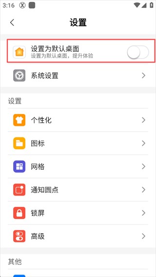 4、开启【设置为默认桌面设置为默认桌面】