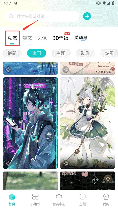 在首页的动态壁纸内选择一张你喜欢的动态壁纸