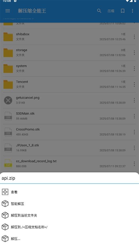 解压缩全能王安卓版是一款专业好用的文件解压类软件。软件整合各种文件管理功能,可以便捷的完成文件的解压压缩。支持多种格式的文件的解压压缩,满足用户的各种文件传输的需求。提供各种等级的文件压缩,实现个性化的文件传输,还能直接查看其中的内容。需要解压软件的用户快来下载使用吧!