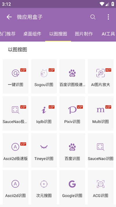 3、选择以图搜图,然后选择自己需要的识别工具就可以了