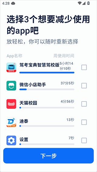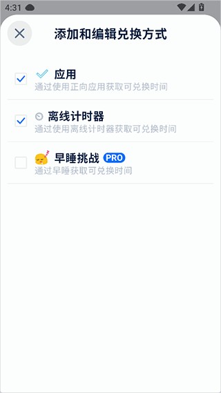 4、添加解锁app后可兑换使用的app或其它自律的生活方式挑战;