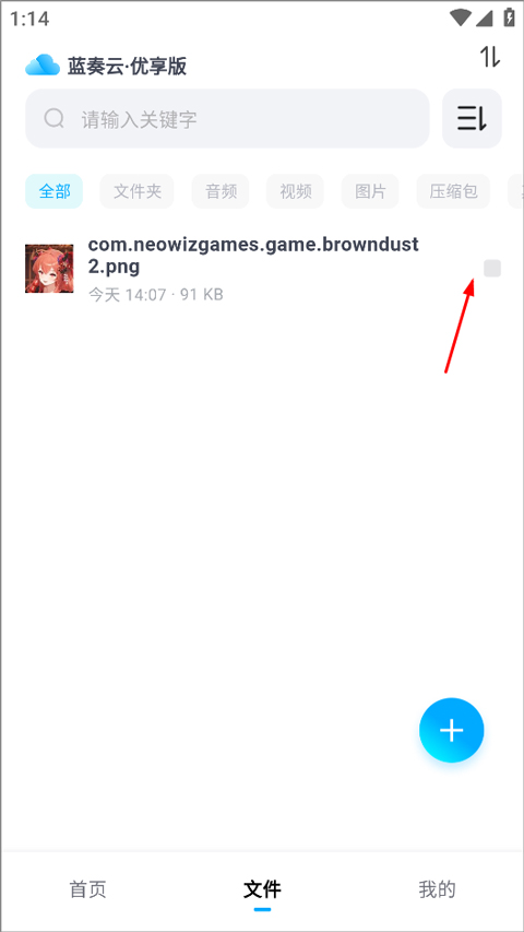 1、进入app后,找到要分享的文件,选中文件右侧的小方框;