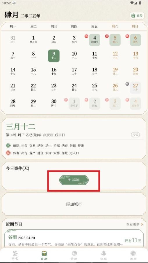 2、进入首页即可查看当前日历,下一个节气是什么时候。