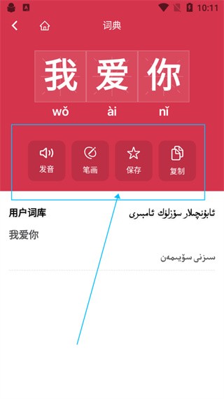 5、点开之后可以看到下面会出现一些其他语言以及发音和笔画啥的,方便我们在线学习;