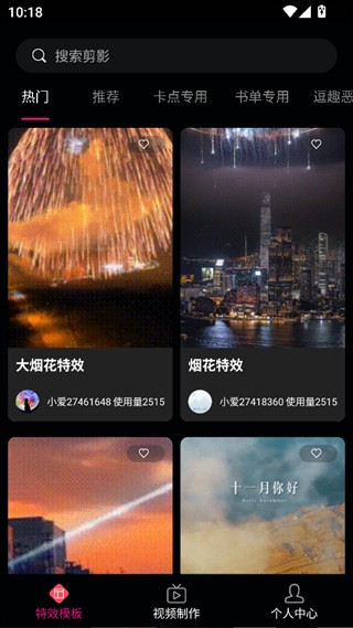 3、特效模板板块汇集了多种风格的模板,并支持搜索模板,方便快速找到所需素材。