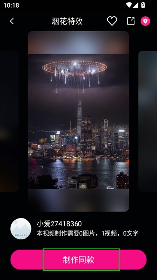 4、选中模板后,点击即可制作同款。