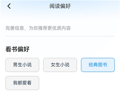 2、你可以选择自己的看书偏好,比如男生、女生或者经典。