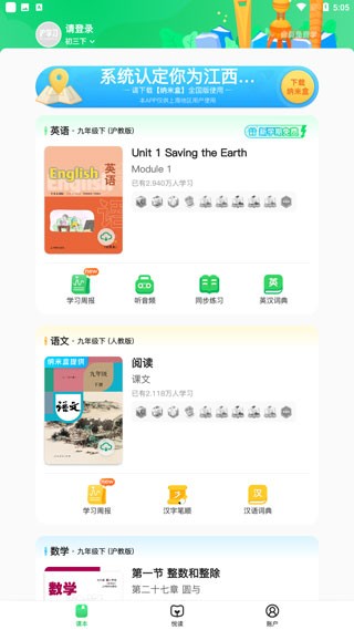 3、课本模块就是该年级所有的科目,里面还分为非常多的小功能。