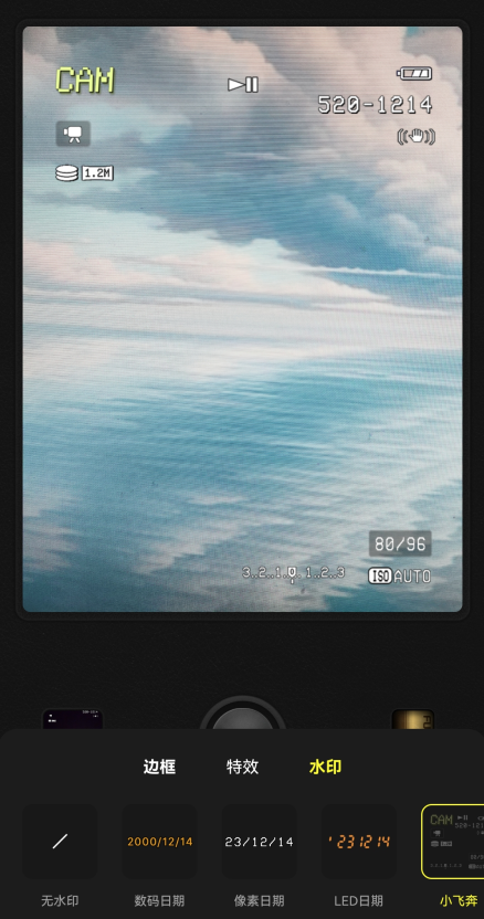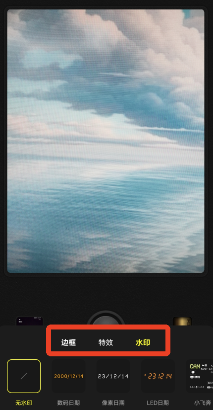 3、选择之后就会出现在屏幕上,拍照后你就能看到水印出现在照片上啦!