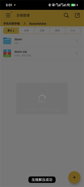5、等待解压进度完成,App会提示「压缩解压成功」。