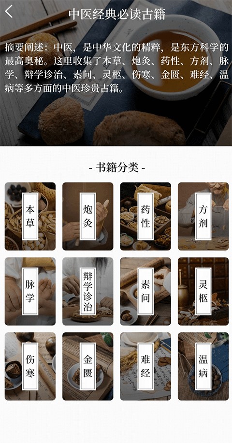 中医养生古籍官方版是一款内容丰富的中医养生软件。软件内置多种类型的中医养生内容,用户能够根据自己的需求来选择并查看,充分满足用户的使用需求。还支持用户查阅各种古籍内容,提升自己的中医知识来更好的生活。需要的用户赶紧来下载吧。