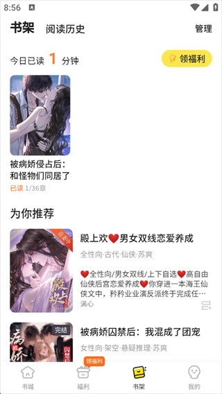 1、登录点点穿书app点击【书架】。