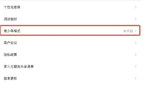 选择青少年模式选项,点击打开