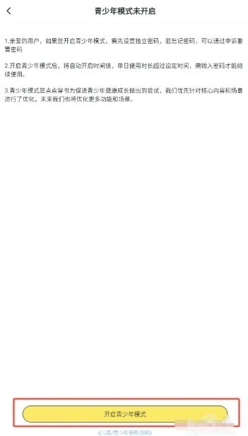 点击界面下方的开启青少年模式按钮。