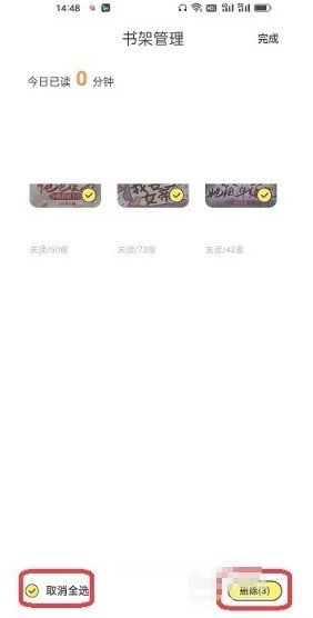 3、来到管理页面后,先勾选【取消全选】,接着点击【删除】。