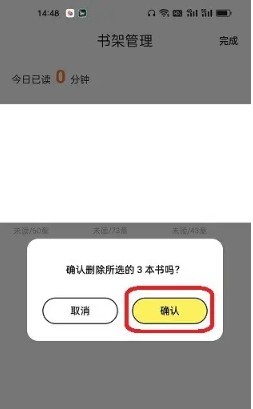 4、来到确认删除页面后,点击【确认】即可清空书架。
