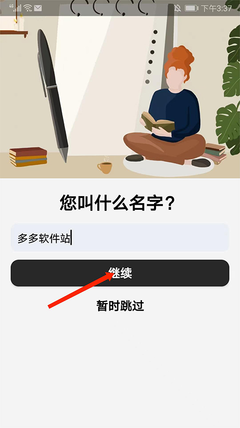 1、打开Motivation高级版,输入自己的昵称后选择【继续】选项,也可以选择暂时跳过,