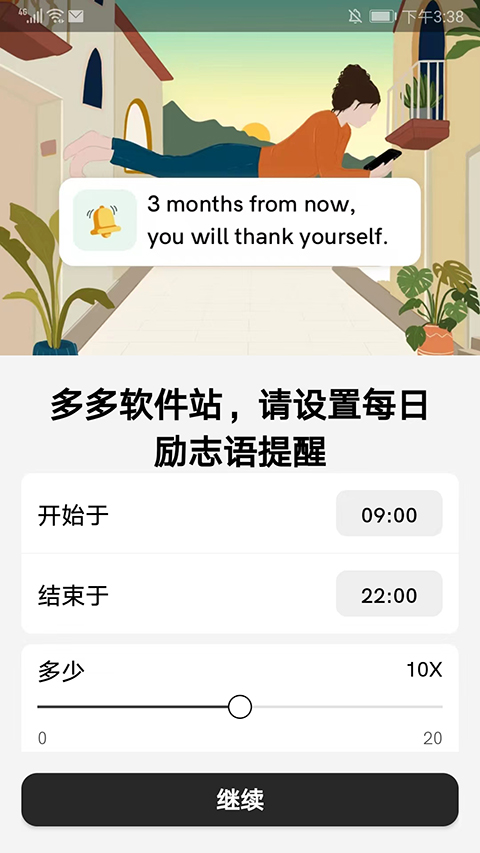 3、我们可以设置每天励志语录的提醒时间和频率,